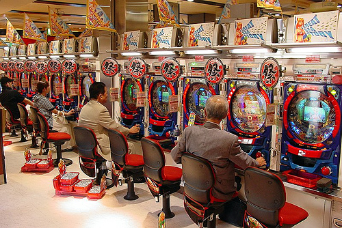 While in Tokyo we saw a large number of gambling machines that all looked very similar, a vertical pinball type interface with a crazy video playing in the middle and a knob to the side which players twisted and balls came flying round the pinball course. Although this was a new type of gambling to us that looked like complete and utter luck, what drew us in were the sheer number of silver balls people had in baskets around their feet. Some players had at least twenty or so of these shoebox sized containers filled with marble sized silvers balls!! These places are so filled with noise coming from the amount of people playing you can hardly talk! Unfortunately we had no idea how to play while in Tokyo so didn’t venture any further until we hit Osaka.